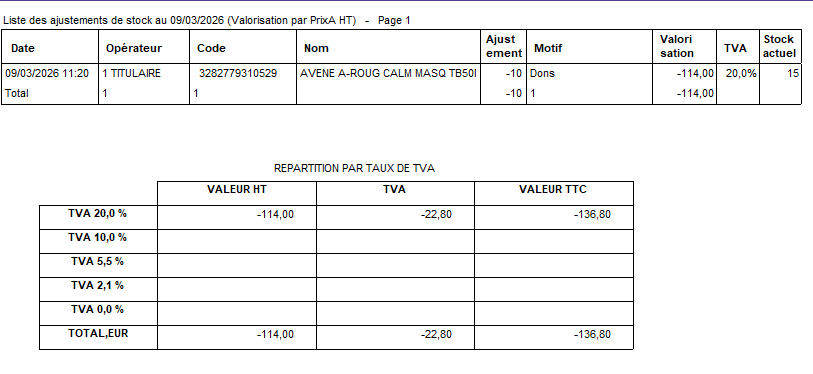 Le résultat de l’extraction affichera la liste des produits concernés, accompagnée de la valorisation correspondant à chaque taux de TVA.