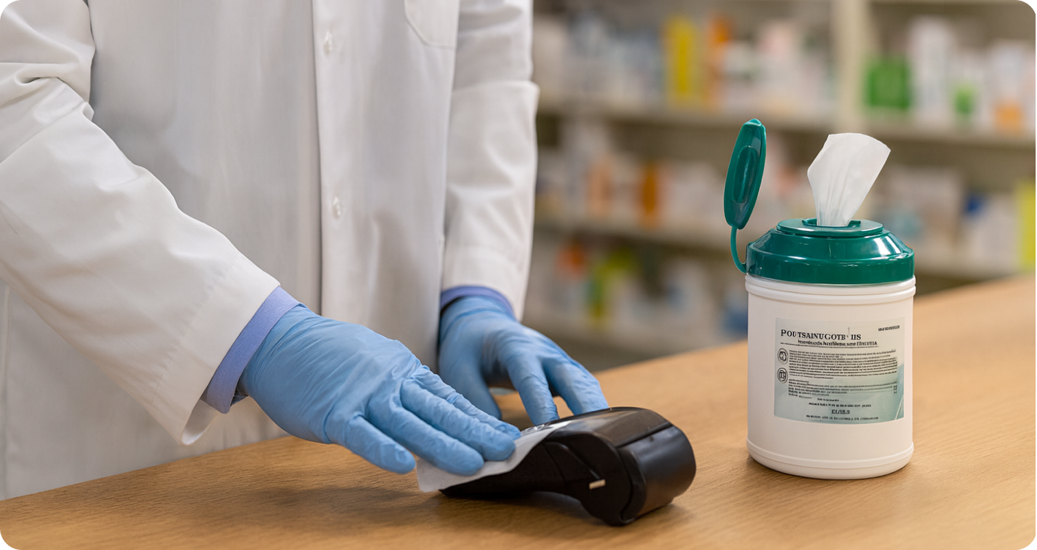 Pour garantir l’hygiène au comptoir et prolonger la durée de vie de vos équipements, il est important de nettoyer régulièrement vos terminaux de paiement et vos lecteurs de carte Vitale.
