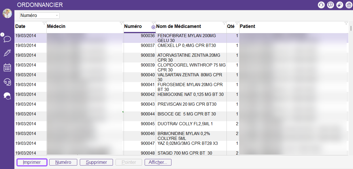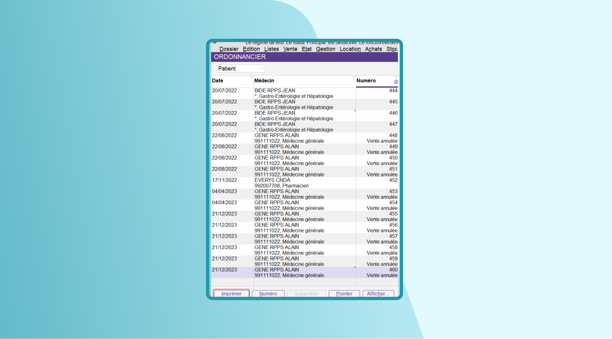 Pour initier cette procédure, accédez au menu : “Listes” > “Ordonnancier”, puis cliquez sur “Imprimer” et sélectionnez la période voulue.