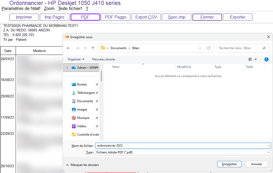 Après avoir cliqué sur “Ecran”, vous avez la possibilité de sauvegarder l’ordonnancier au format PDF en utilisant le bouton dédié.