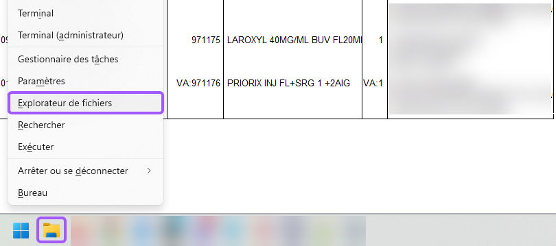 Si vous ne trouvez pas l’icône, faites un clic droit sur le bouton du menu Démarrer, représenté par le logo Windows, puis sélectionnez “Explorateur de fichiers”.