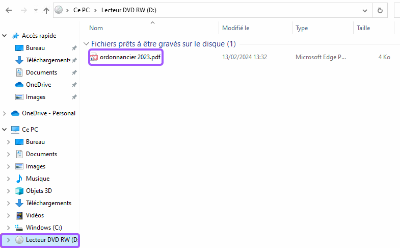 Ensuite, une fois que vous avez trouvé votre fichier, faites un clic droit dessus et sélectionnez “Copier” puis cliquez sur votre CD et collez-y le fichier.