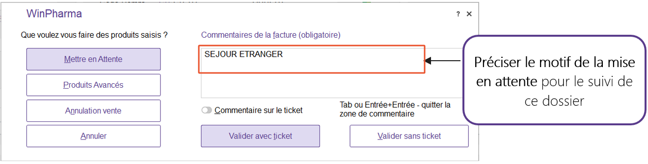 Si vous faites la démarche pour votre patient, préparez la facture dans Winpharma et les produits à délivrer, puis la mettre en attente.