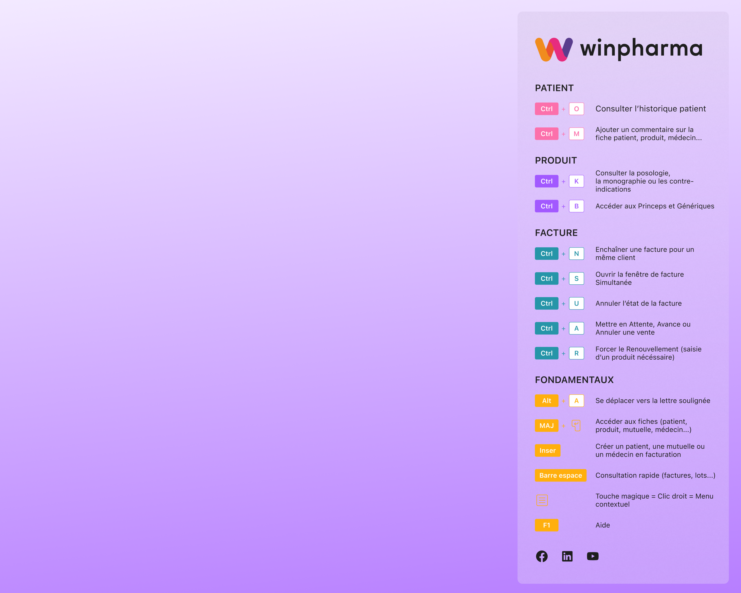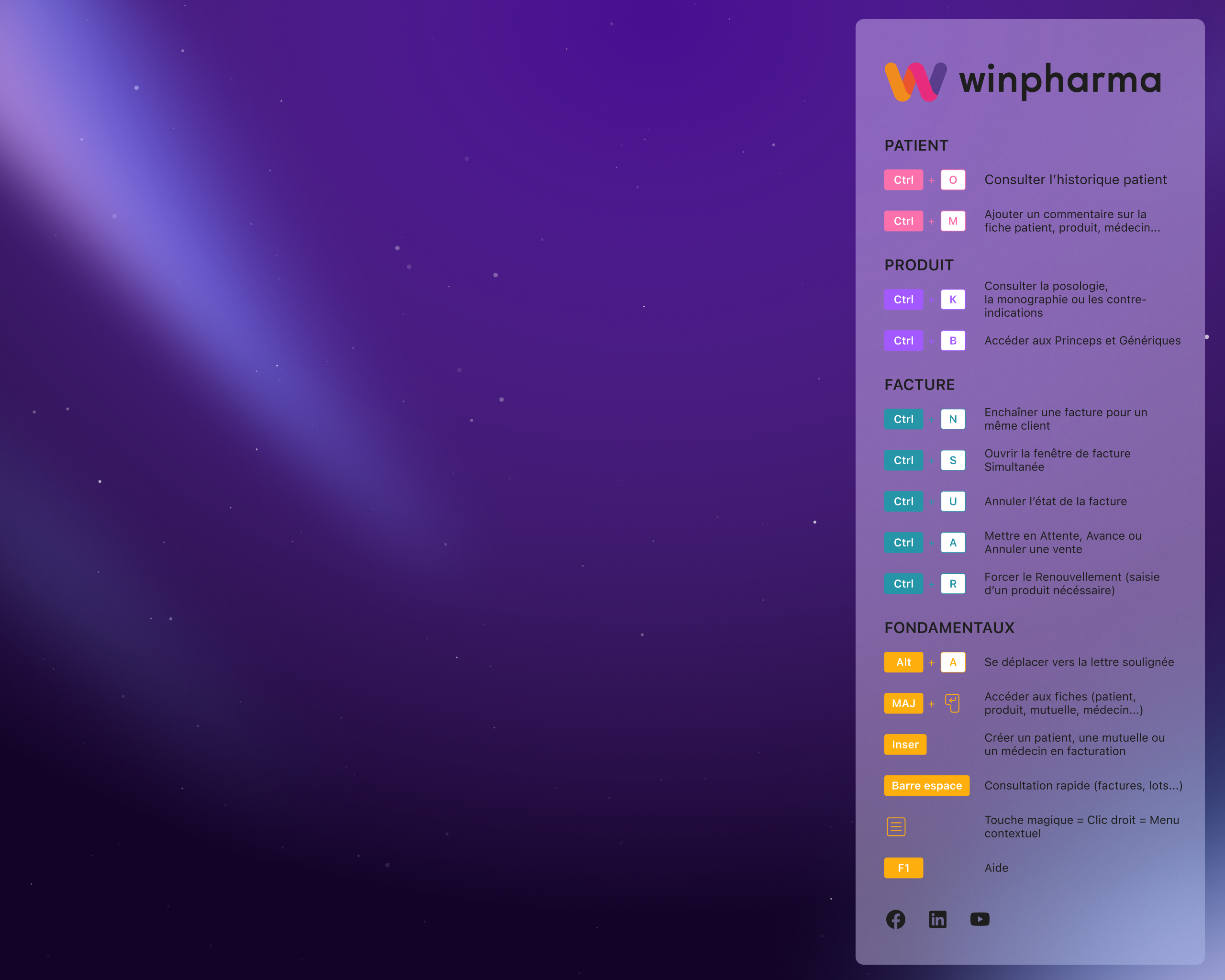 Nous vous proposons de télécharger et de paramétrer un fond d’écran dédié aux raccourcis clavier les plus utiles dans Winpharma !