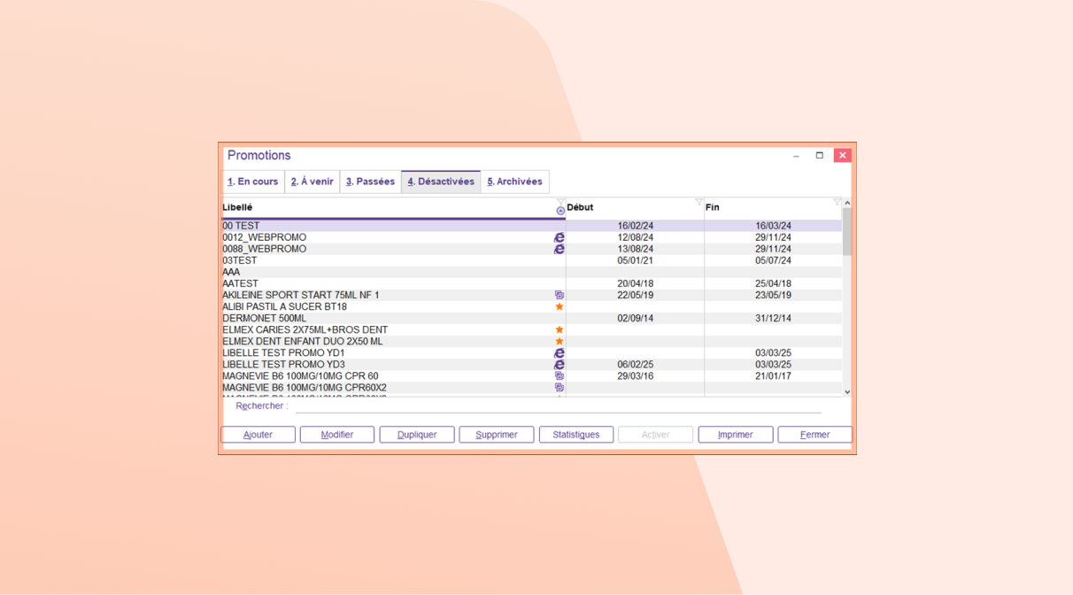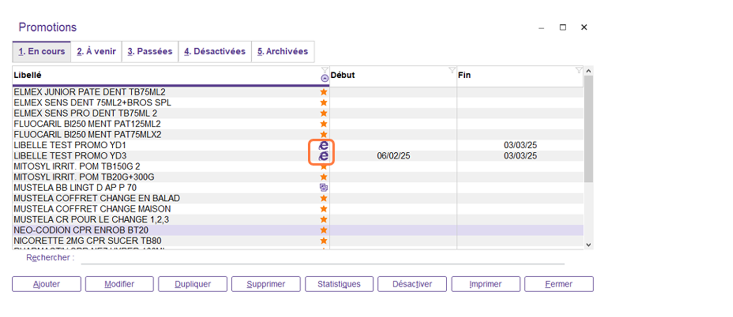 Une fois intégrées dans Winpharma, les promotions apparaissent clairement identifiées grâce à une icône spécifique.