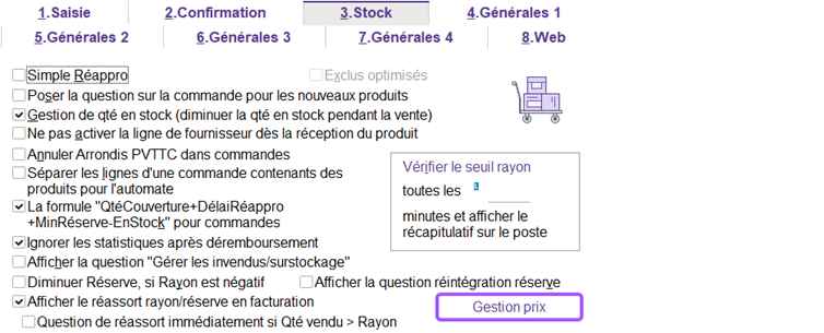 Puis dans l’onglet 3.Stock : cliquez sur le bouton : “Gestion prix” et vous pouvez choisir entre « Coeff » et « PV TTC » pour que l’un ou l’autre soit fixé par défaut.