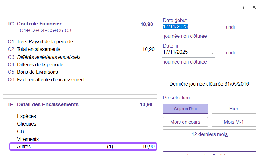 Grâce à ce mode dédié, vous pouvez clôturer vos opérations en toute conformité, assurer un suivi précis de votre facturation et maintenir une comptabilité cohérente au sein de votre officine.