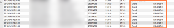 Les codes erreurs à identifier dans Winpharma sont les suivants :