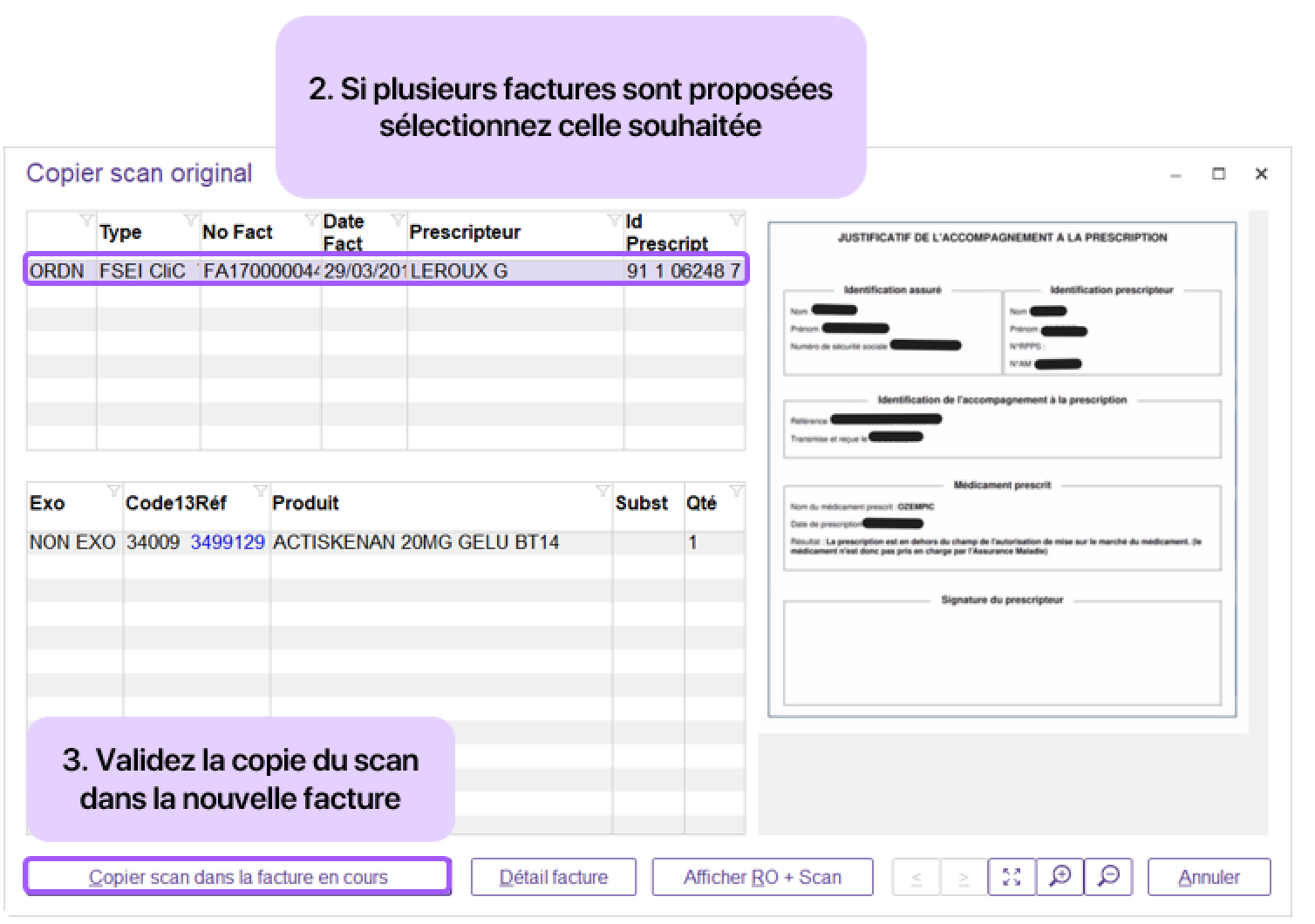 Il vous restera à ajuster la date d’ordonnance, et à récupérer le scan de l’ordonnance avec F6 comme vu précédemment.