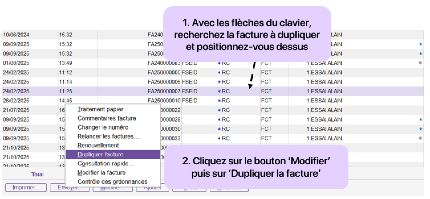 La duplication de facture nécessite de vérifier qu’il n’y a pas eu de changement (dosage, référence, …)