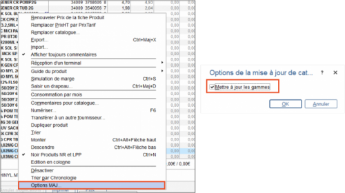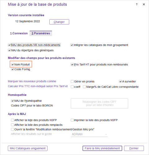 La MAJ produits peut modifier les libellés si l’option est cochée dans le paramétrage de la MAJ.