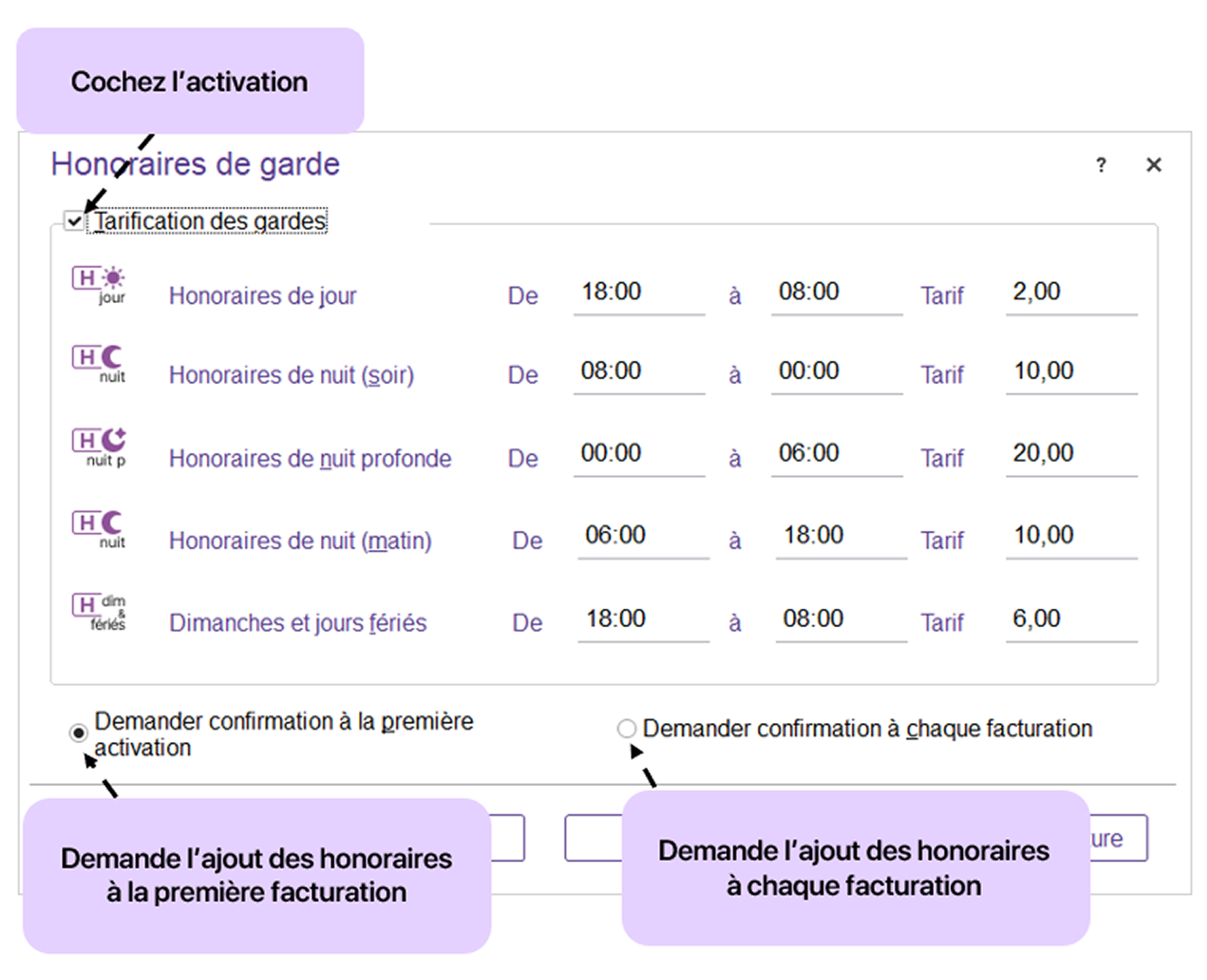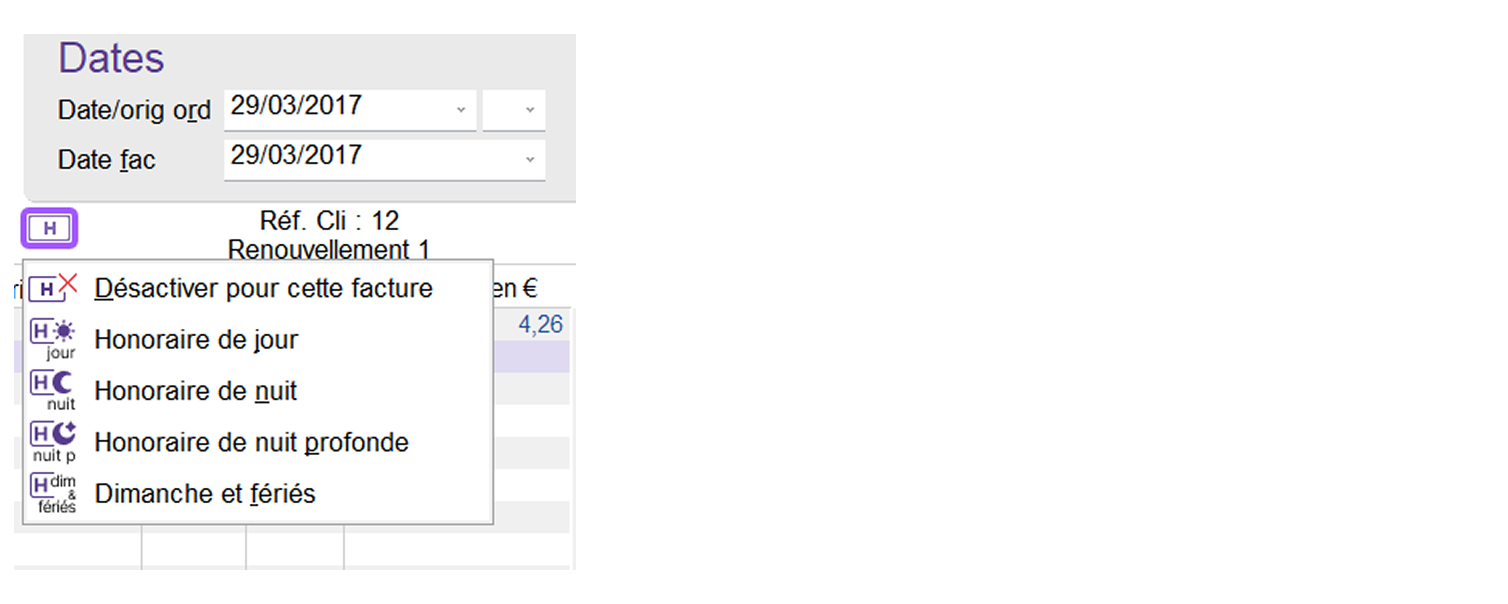 L’application des honoraires de garde se fait dans la facturation automatiquement.