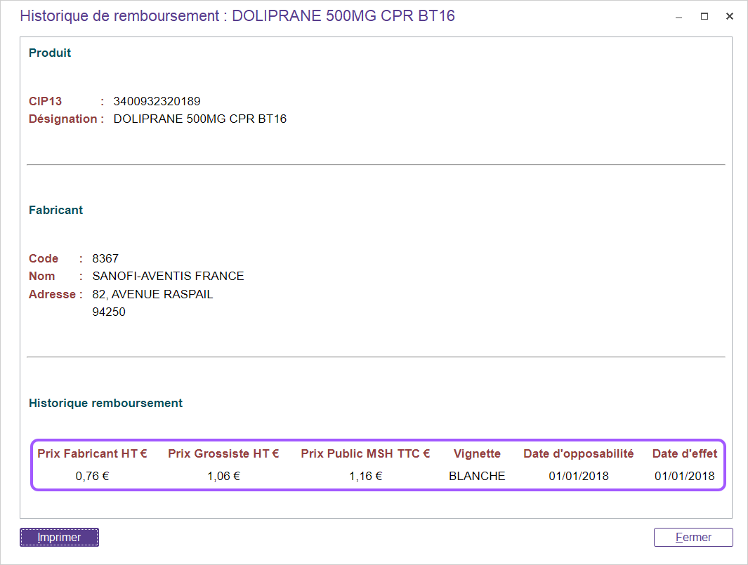 - La gestion des fiches produits : La zone d’informations générales pour un produit remboursé/non remboursable