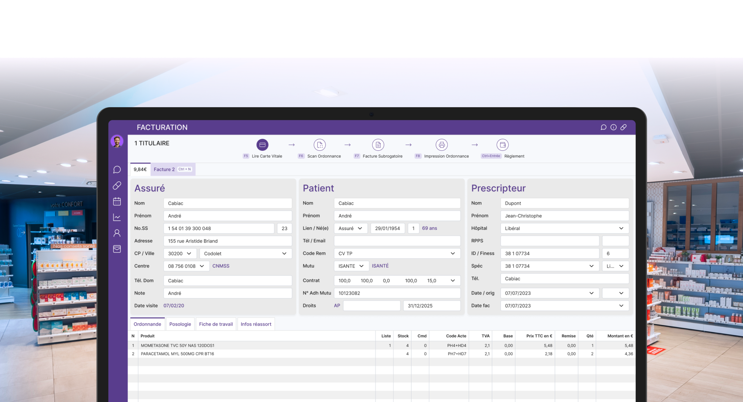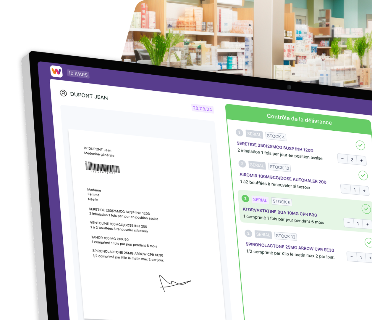 winPrescription analyse l’ordonnance, identifie le patient et propose en quelques secondes une délivrance adaptée selon l’historique, le stock et les règles de substitution de la pharmacie.