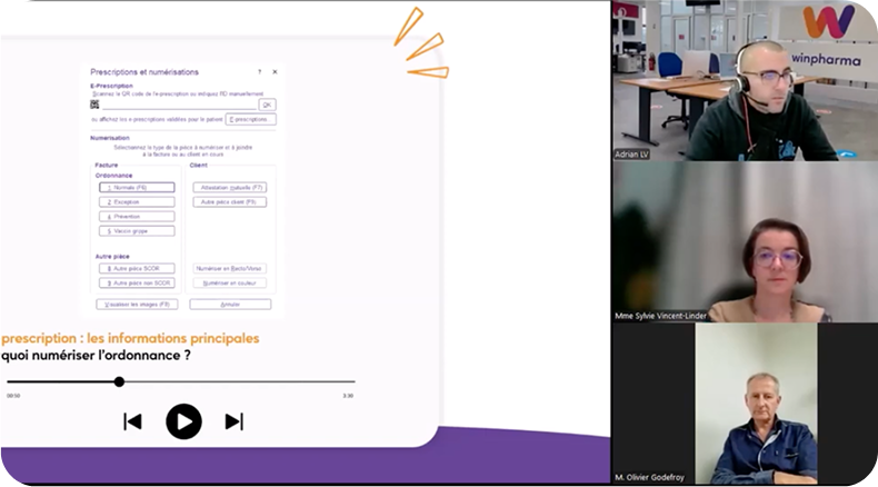 Winpharma a été pensé pour le quotidien officinal : son interface intuitive facilite la prise en main par l’ensemble de l’équipe. Vous êtes accompagnés à chaque étape jusqu’à l’autonomie complète de vos collaborateurs. En amont, vous bénéficiez de contenus de préformation pour vous familiariser avec l’outil. Le jour de l’installation, nos équipes sont présentes dans votre officine pour assurer la formation.