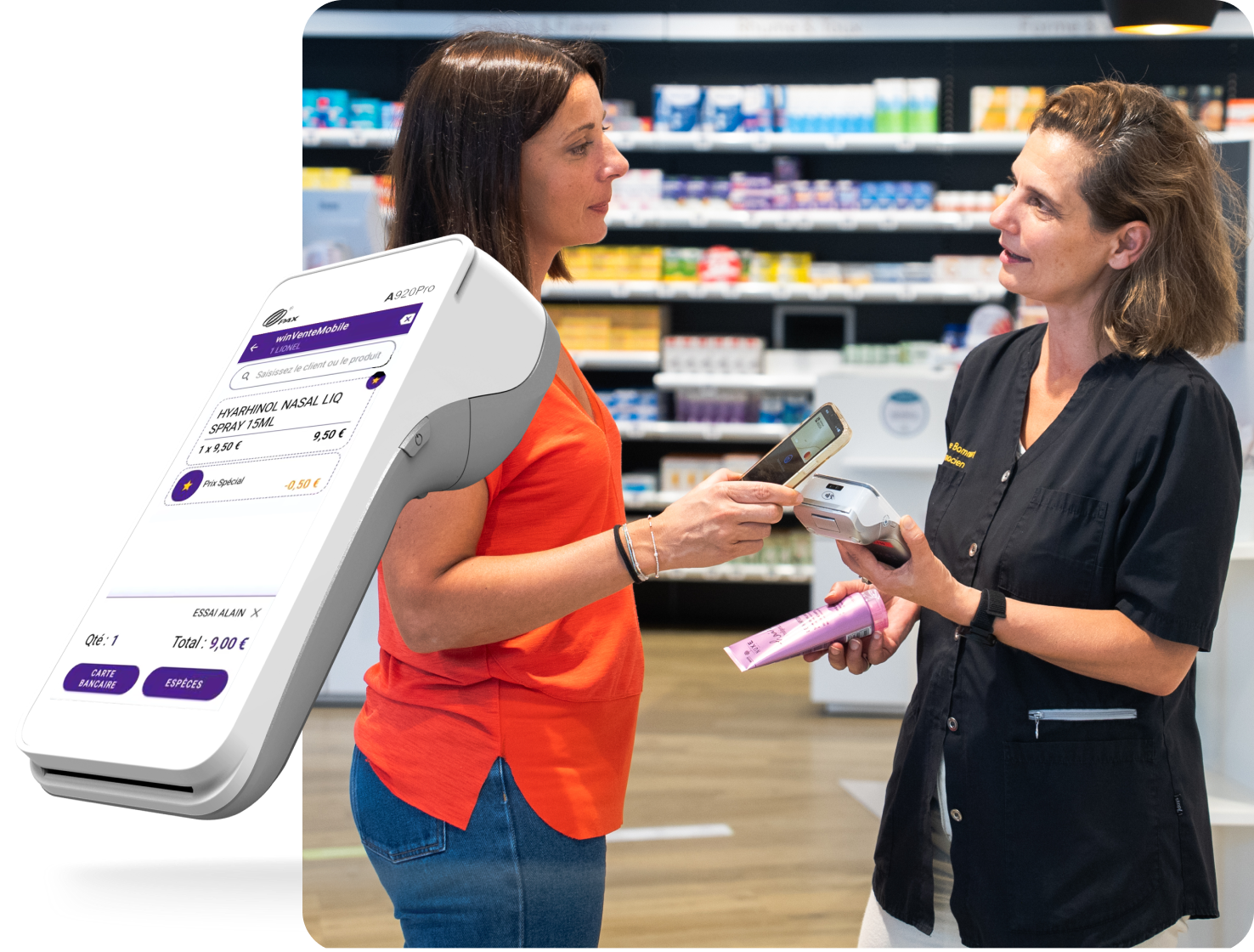 Directement connecté au logiciel Winpharma, winVenteMobile vous permet de conseiller et d’encaisser dans votre espace de vente, sans passer par le comptoir.
